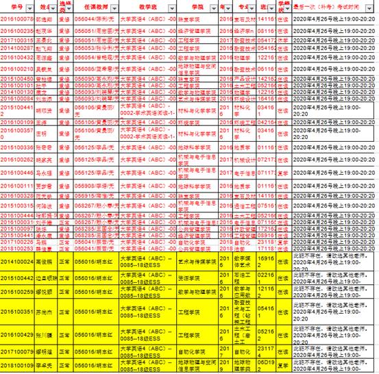 2020年4月19日,大学英语(四)期末考试结束后,太阳集团tyc151cc大英二教研室迅速对考试情况进行了整理,通过全体教员线上接龙,得出了考试情况:应考人数3499人,共有3461人参加考试,缺考人数38人,其中正常选课员工18人、重修生20人。