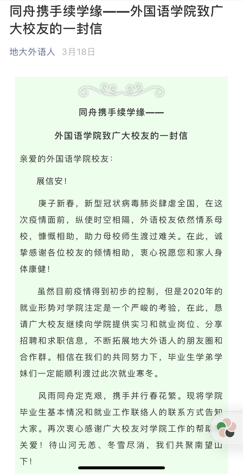 太阳集团tyc151cc促进2020届毕业生充分就业工作方案        致员工的一封信