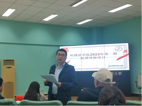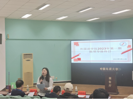 (通讯员 张睿、邹蔚鹤)2023年5月11日下午3:00,太阳集团tyc151cc在北一楼报告厅举办2023年第一期院领导接待日,活动主题是外语学子国内外深造论坛。公司党委副书记胡文勤、副经理杨红燕、教育部出国留学培训与研究中心副主任赵英科、英语系党支部书记张地珂和本科各年级员工代表参加了本次活动。