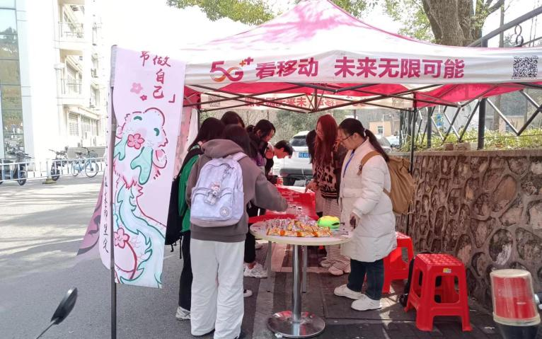 活动伊始,权益服务部志愿者们用精美的妇女节主题条幅点缀活动摊点,使之犹如绚丽多彩的春日画卷。