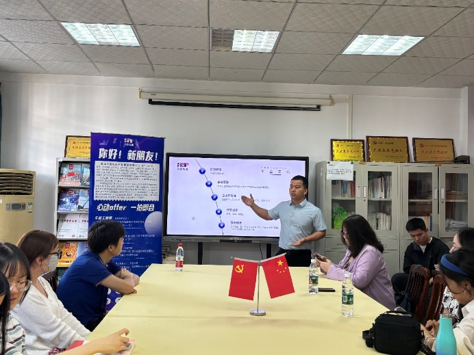 随后,主讲人王女士继续介绍了汉普公司的招聘信息,其中详细介绍了四个招聘岗位:专利工程师、总经办助理、销售顾问和实习管培生。紧接着,王女士也就公司环境、公司活动、入职培训等内容进行了介绍。她表示, 希望通过这次宣讲会让同学们更加了解知识产权行业,也希望能借此机会促进知识产权行业的宣传。