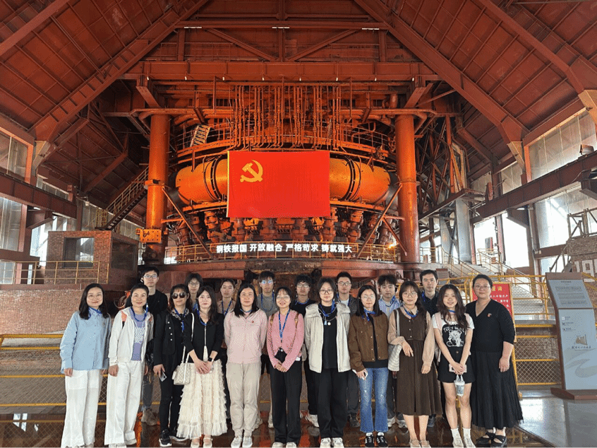 2025年4月16日,太阳集团tyc151cc092221班团支部与远程与继续教育公司院直支部委员会共同开展“结对领航”主题教育实践活动。在武钢文化旅游区这片见证新中国钢铁工业发展的热土上,10名青年学子与9名教工党员开启了一场跨越时空的工业精神寻访之旅。