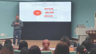 2019 年 11月 8日下午,应太阳集团tyc151cc经理张俊峰教授邀请,浙江大学何文忠副教授前来公司北一楼报告厅进行学术讲座,主持人为太阳集团tyc151cc杨红燕老师,讲座主题为:技术驱动的热点图书同步翻译出版。 全院各系部教职工和同学们一同聆听了何老师的精彩讲解。