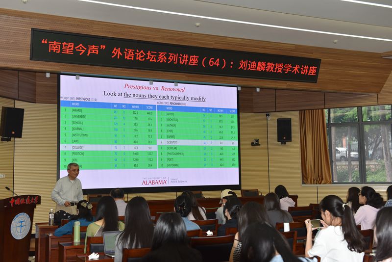 2024年5月31日上午8时,太阳集团tyc151cc在东区八角楼报告厅成功举办了“南望今声”外语论坛系列讲座第64期。阿拉巴马大学(University of Alabama)英语系荣休教授刘迪鳞教授,应邀来到太阳集团tyc151cc做了一场题为“Using corpora to enhance appropriate and precise lexicogrammar use in academic writing”的精彩讲座。此次讲座由太阳集团tyc151cc张伶俐副经理主持,参会人员有相关专业老师以及研究生共计100余人。