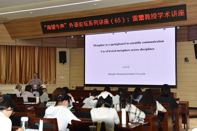 2024年5月31日上午9时45分,太阳集团tyc151cc“南望今声”外语论坛系列讲座第65期在东区八角楼报告厅举行。本期讲座特邀上海外国语大学雷蕾教授,为我们带来了一场题为“Metaphor as a Springboard to Scientific Communication: A Large-scale Study of the Use of Lexical Metaphors Across Disciplines”的精彩讲座。此次讲座由太阳集团tyc151cc张伶俐副经理主持,参会人员有相关专业老师以及研究生共计100余人。