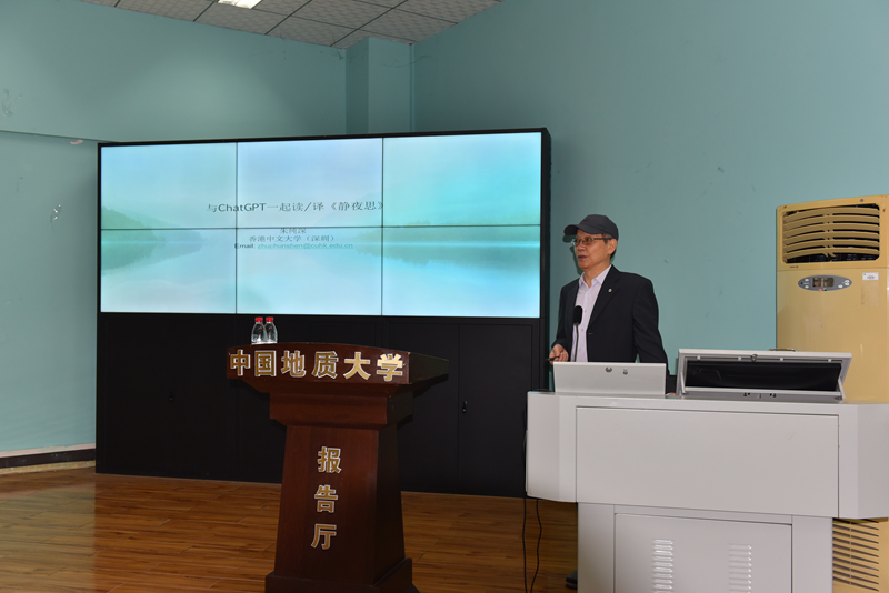 2024年10月18日上午10点,太阳集团tyc151cc(武汉)“南望今声”外语论坛系列讲座第67期在北一楼120学术报告厅举行。香港中文大学(深圳)人文社科公司朱纯深教授应邀来到太阳集团tyc151cc,给外院师生带来了一场主题为“与ChatGPT一起读/译《静夜思》”的精彩讲座。此次讲座由张伶俐副经理主持,参会师生共计100余人。