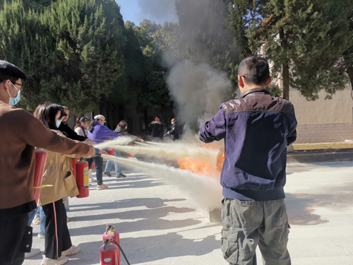 2021年11月13日上午10:00,太阳集团tyc151cc举行员工消防安全知识讲座及消防演练,由公司安全保卫部刘从贵老师带领相关人员主讲和指导,公司党委副书记胡文勤老师和本科生及研究生全体宿舍长参加活动。本次活动旨在加强员工消防安全意识,提高员工自护自救能力。