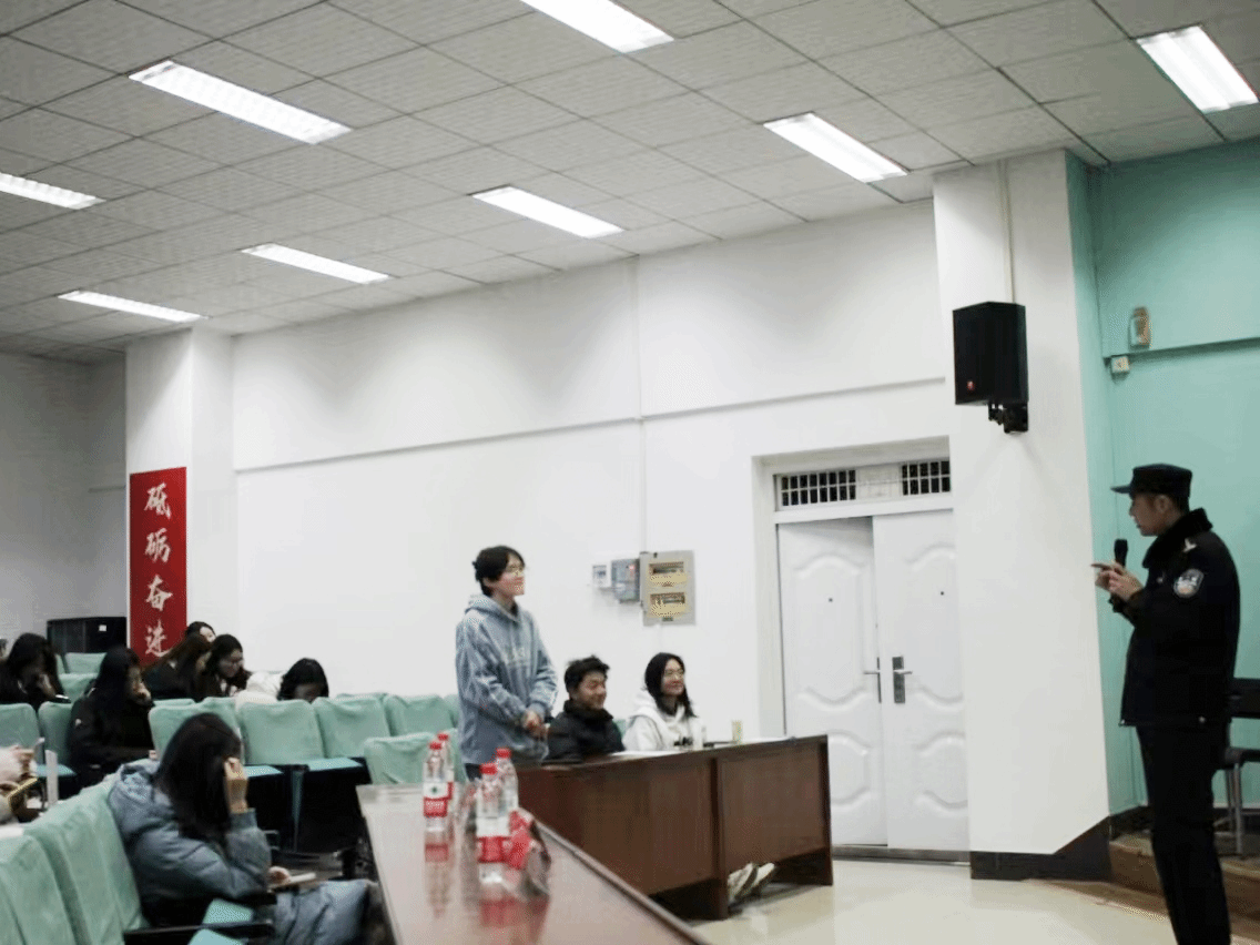 问答交流环节,同学们踊跃提问,内容涉及遭遇诈骗后的财产追回、有效反诈方法等方面。针对“如何更有效地防范诈骗”等问题,王东警官凭借丰富执法经验耐心解答。他强调遇到陌生信息索要钱财、银行卡号,或能详细说出个人信息的情况,都不可轻信。同时,推荐“国家反诈APP”,鼓励同学们下载使用,为财产安全筑牢防线。