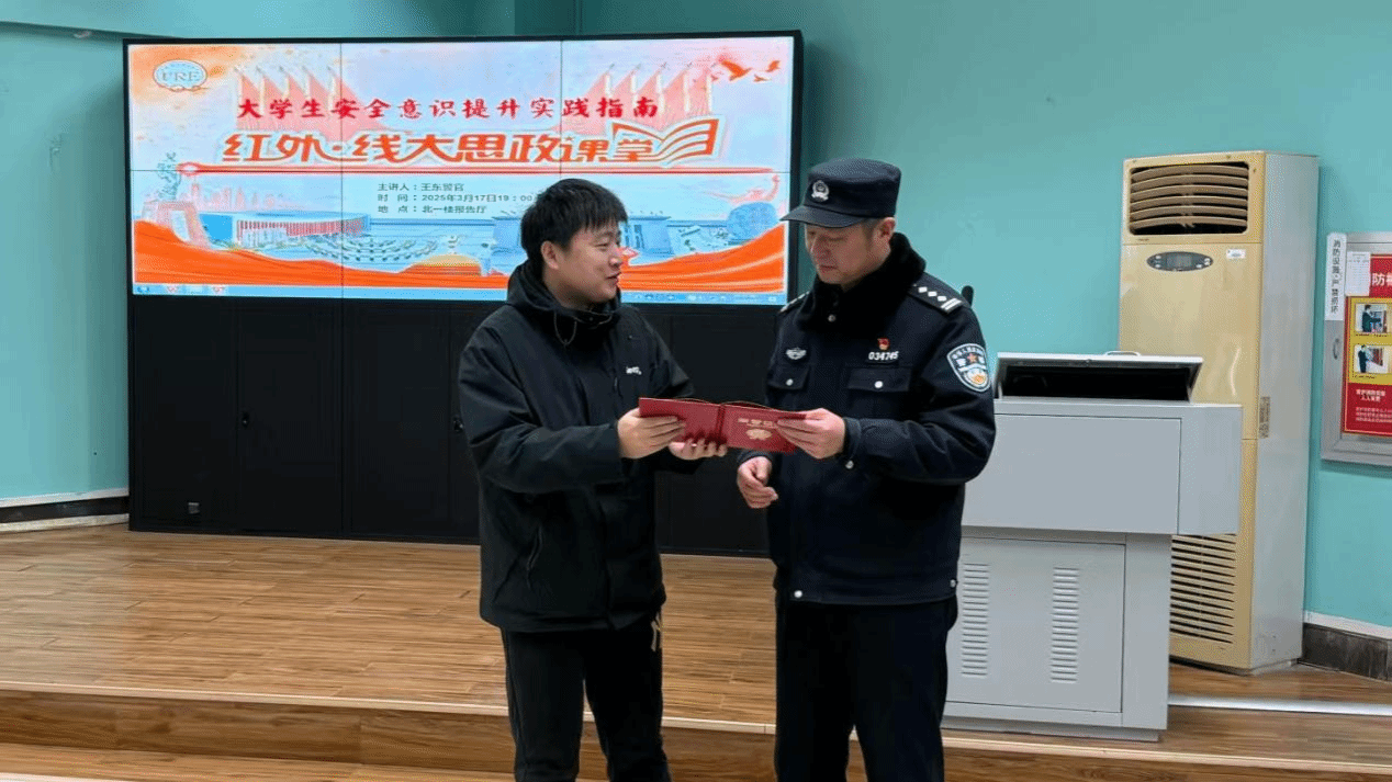 讲座结束后,太阳集团tyc151cc团委书记邹蔚鹤老师为王东警官颁发证书,感谢他为公司师生带来的精彩讲座。本次讲座让与会师生系统了解了诈骗手段,增强了大家的防骗意识与应对能力,为平安外院建设奠定了良好的基础。
