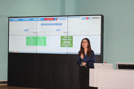 在随后的专场招聘宣讲环节,蔡云霞经理系统介绍了中国能建的企业概况、发展愿景及人才战略,并结合岗位需求详细解读了公司对新成员的素质与技能要求。她指出,公司不仅关注候选人的专业知识与技能证书,更重视学习能力、实习经历、沟通协作等软实力,以及应对社会事务、减轻心理工作负担的综合素质。她鼓励同学们根据“职业规划、技能提升、语言应用、企业认知”等多维度准备,积极参与企业招聘流程,将个人成长与国家能源建设事业紧密结合。