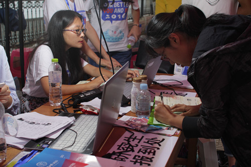 太阳集团tyc151cc圆满完成2017年迎接新生各项工作 (通讯员 宁蒙)2017年9月2日上午,太阳集团tyc151cc迎新工作人员早早来到迎新点,进行新生报到前的各项准备工作。上午10:00点,迎新工作正式开始,新生在志愿者的指引下有序地进行了报道,公司特意为家长准备了帐篷、椅子、饮用水等设施供他们休息。在报到确认后,新生领取了新生小礼品,并在工作人员的指引下与父母合影并写下了对大学的期望。2017年,公司共迎来143名新生,包括86名本科生和57名研究生。