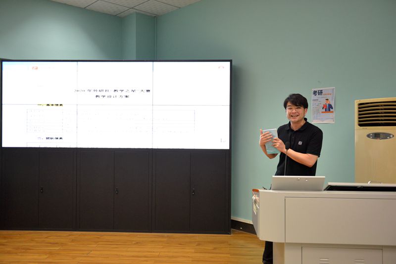 冯迪老师向大家展示了自己参加外研社“教学之星”大赛的课程设计,冯老师将莎士比亚戏剧与中国戏曲元素结合,体现了中西文化融合,也展现了英语课程专业性与育人性有机结合。