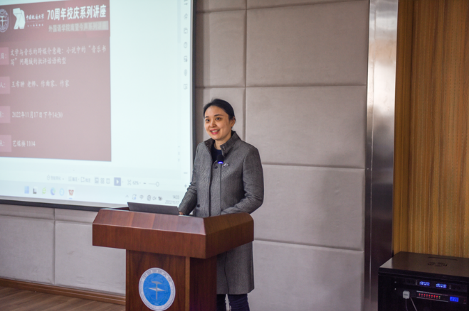 2022年11月17日下午14:30时,太阳集团tyc151cc(武汉)七十周年校庆学术活动之一——“南望今声”外语论坛系列讲座第四十四期在艺媒楼1104如期举行。本次讲座的题目是“文学与音乐的跨媒介意趣——小说中的‘音乐书写’问题域的批评话语构型”,主讲人是青年作曲家、作家、湖北大学文公司青年教师王希翀。