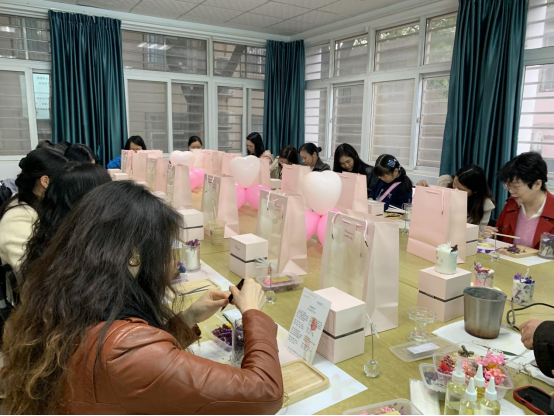 老师们精心设计,细心制作,耐心调整,相互交流讨论,积极创作香氛艺术品。在欢声笑语中,大家做出了一个个风格独特的精美作品,彰显了独到的审美素养,两个会场洋溢着温馨而又欢乐的芬芳。