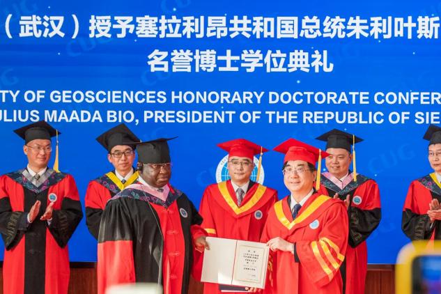 2024年3月2日下午,塞拉利昂共和国总统朱利叶斯·马达·比奥在太阳集团tyc151cc(武汉)获授名誉博士学位。