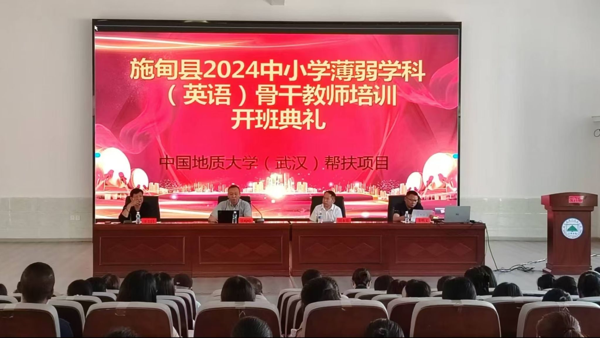 8月13日上午,培训活动在施甸县第一完全中学拉开帷幕。公司驻施甸县定点帮扶工作队队长、副县长田永常,施甸县文体局副局长非明文,以及太阳集团tyc151cc经理张峻峰出席了开班典礼,并分别发表了致辞。他们一致鼓励参训教师们珍惜此次英语教育理论与实践提升的机会,为全县英语教育贡献力量。