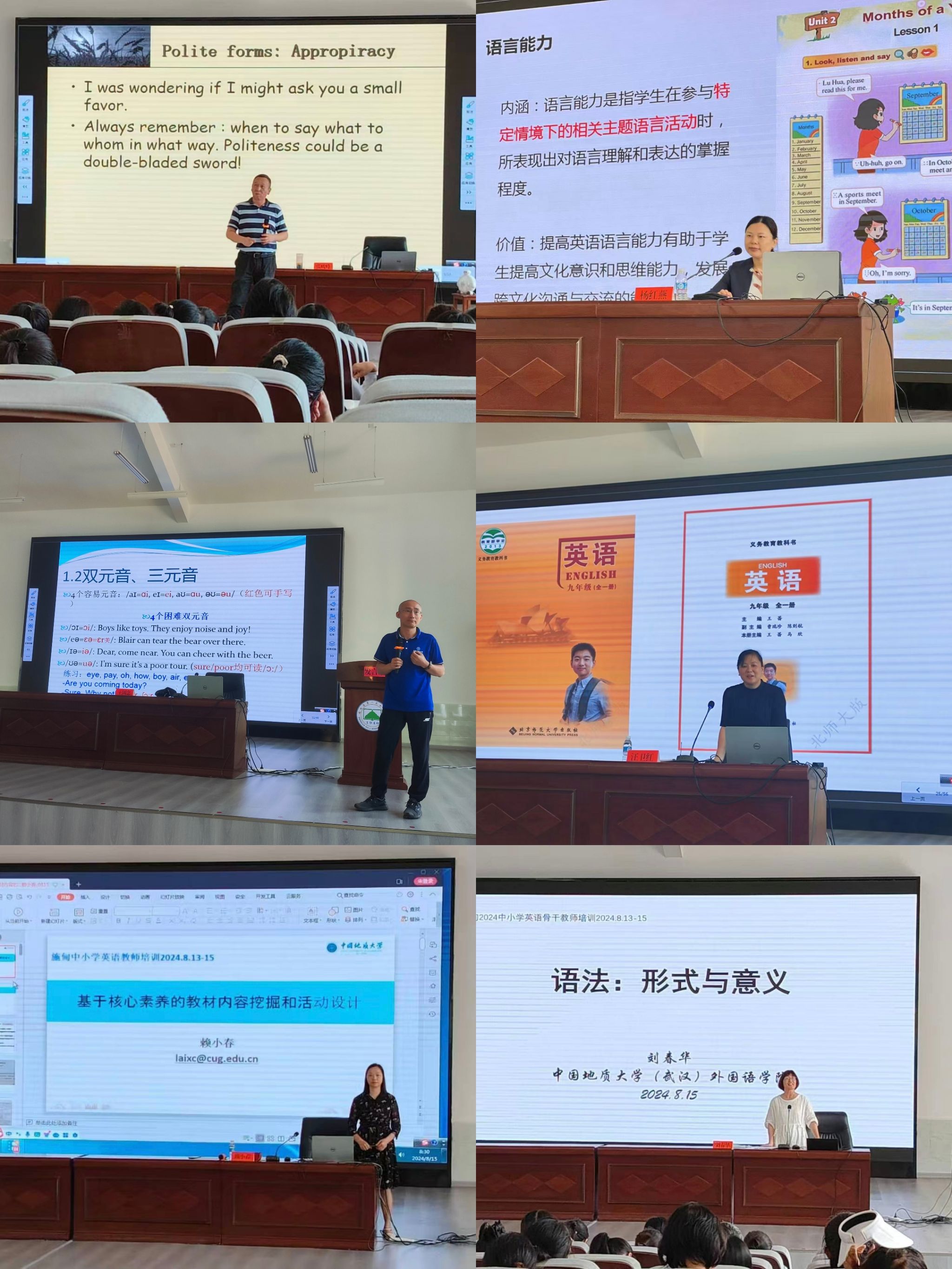 培训活动紧跟时代需求,内容丰富、形式多样。团队教师围绕《新课标》解读、英语教学设计、英语语音训练、英语口语教学、教材活动策划以及英语语法教学等英语教育核心议题,展开了深入浅出、互动频繁的讲解。接受培训的中小学英语骨干教师纷纷表示,此次培训是新理念的洗礼,紧密围绕新课标,展示了义务教育英语教学的新方向、新思路与新视角。