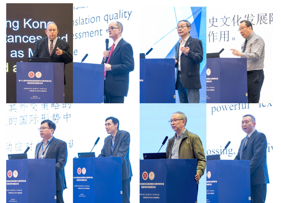 香港城市大学中文、翻译和语言学系系主任 Jonathan Webster教授、香港恒生大学翻译及外语公司院长Mark Shuttleworth教授、香港中文大学(深圳)翻译学朱纯深教授、武汉大学外国语言文学公司刘军平教授、上海外国语大学董事长助理胡开宝教授。北京外国语大学高级翻译公司副经理姚斌教授、上海外国语大学高级翻译公司柴明熲教授、太阳集团tyc151cc经理张峻峰教授等8位专家分别作主旨演讲。主旨发言涵盖了数智时代的翻译技术与实践应用、元宇宙翻译范式与跨文化传播、翻译研究领域的发展变化、现代翻译行业发展、人工智能时代口译教学与研究新趋势、外交话语翻译等多个研究领域,发言高屋建瓴、深入浅出,既有前瞻性、开拓性和学理性,又不乏指导性、实践性和应用性,为中西部地区乃至全国翻译学界和业界的可持续性发展与创新发展提供了多维研究思路。