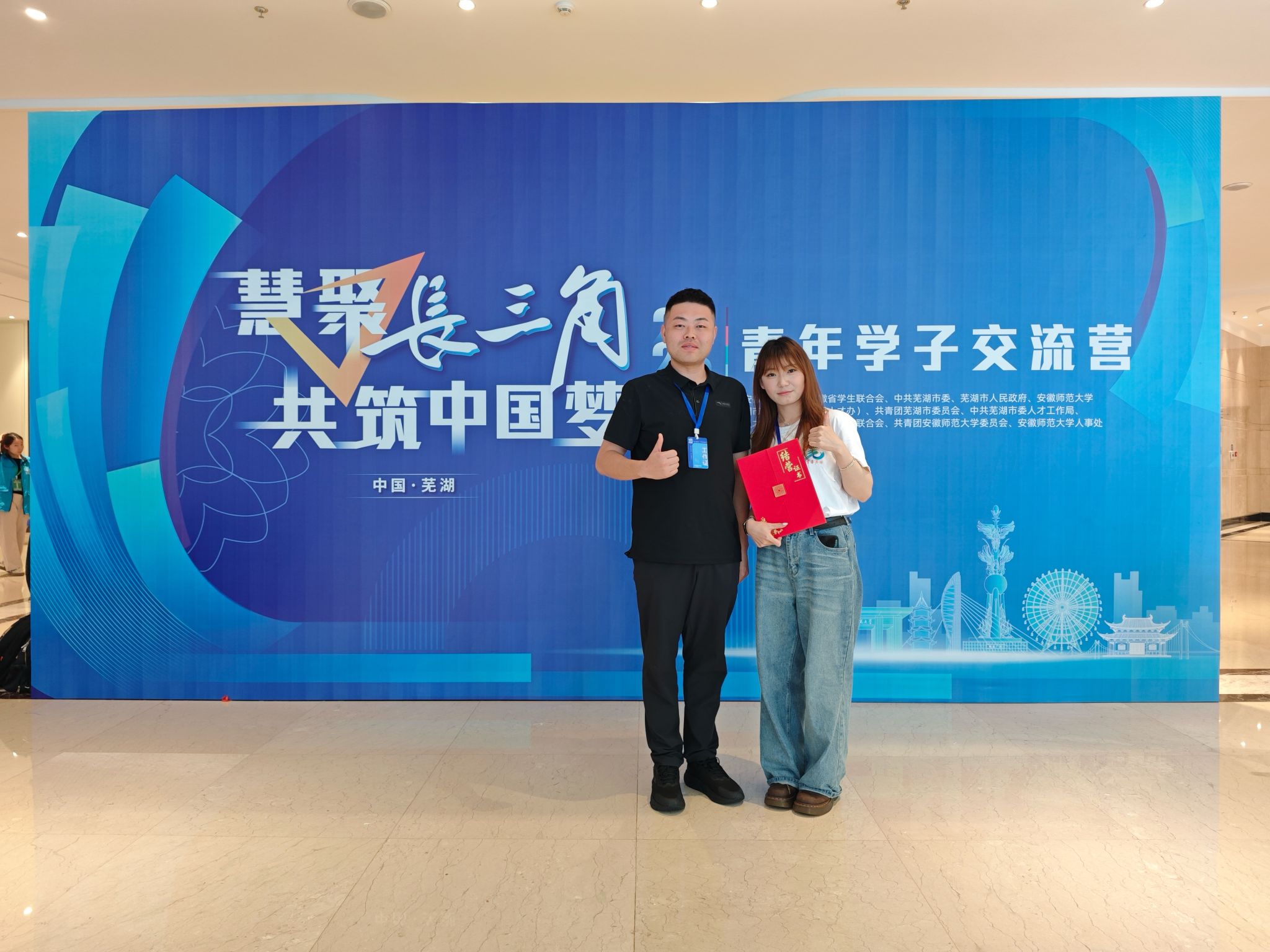 为进一步强化员工生涯意识,树立积极就业观,公司主动对接省外优质资源,积极选派刘梦霞、黎玉淇2名硕士研究生参加由共青团安徽省委员会、安徽省员工联合会、中共芜湖市委、芜湖市人民政府、安徽师范大学联合举办的“慧聚长三角,共筑中国梦”青年学子交流营。
