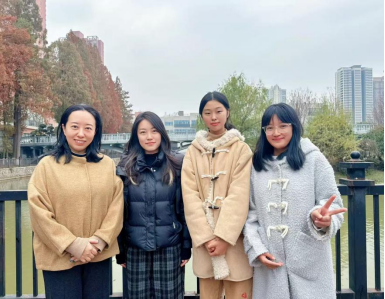获奖员工王晨熙(左二)、孙一滋(右二)、袁春琳(右一)与指导老师姚夏晶(左一)