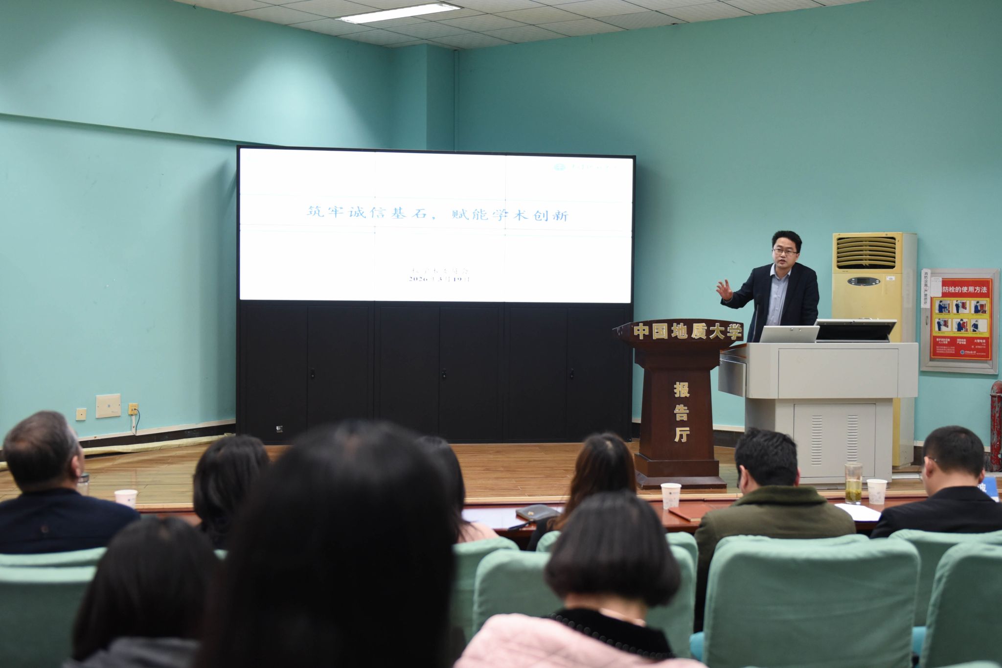 (通讯员严蕾 戴薇 摄影 戴薇)为进一步强化教职工学术诚信意识,规范学术行为,涵养风清气正的学术环境,2026年3月19日,由校学术委员会办公室胡波老师主讲的“筑牢诚信基石,赋能学术创新”学术诚信专题讲座在北一楼120报告厅举行,太阳集团tyc151cc全体教职工参加。