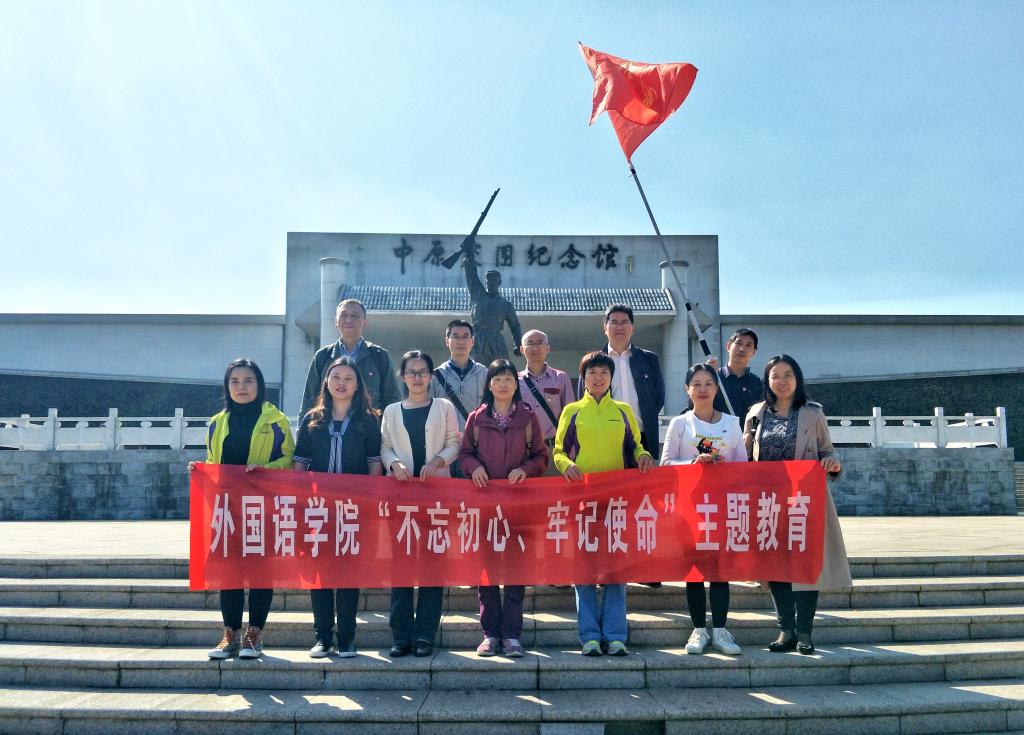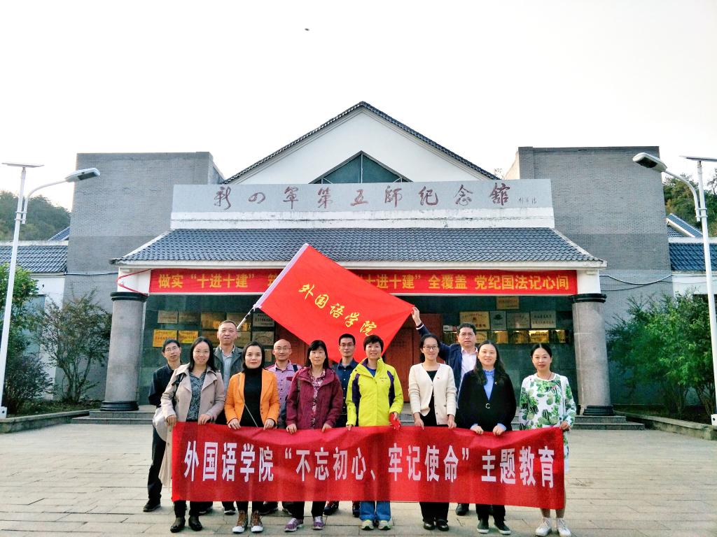 (通讯员:宋干锋) 为进一步做好2019年度“不忘初心、牢记使命”主题教育 --- “继承革命光荣传统、走好新时代长征路”专题实践教育活动,加强对公司党政领导干部的革命传统精神再学习、再教育,外国语公司党委积极筹划,于2019年11月9日至10日组织公司党政班子成员、教工支部支委赴大悟开展红色教育实践活动。