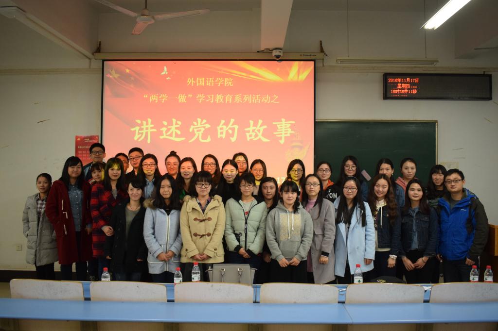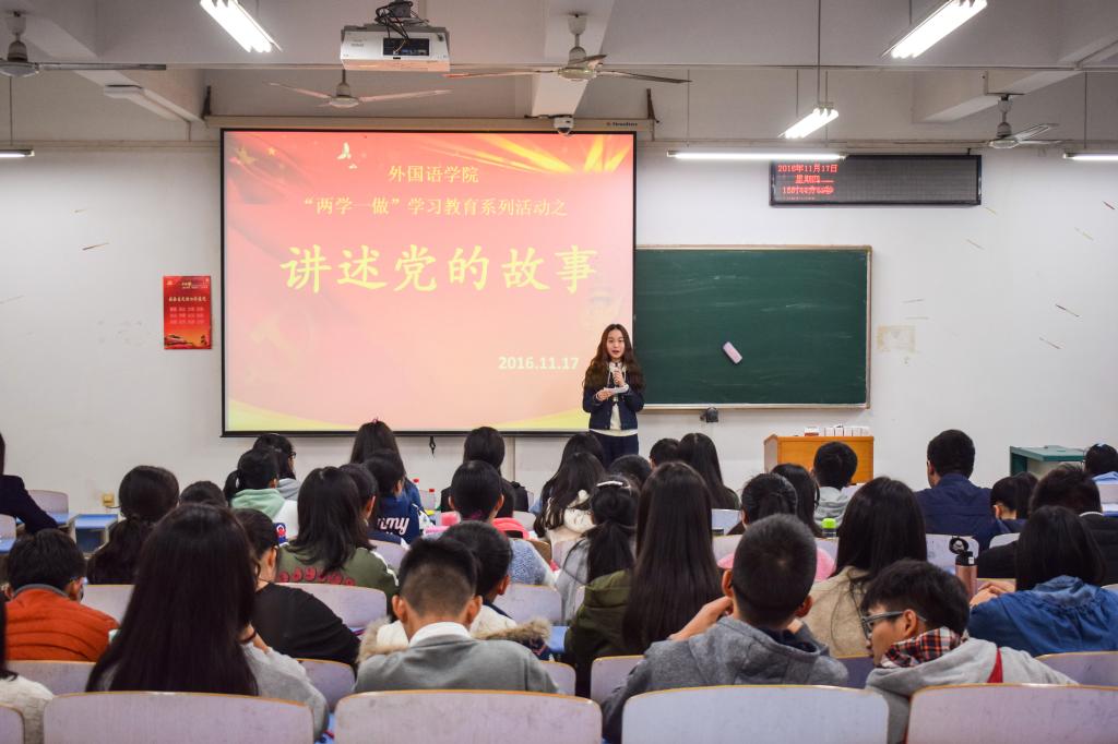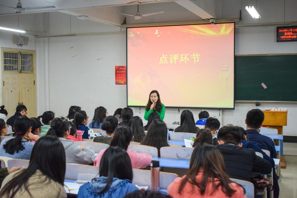 (通讯员罗颖)11月17日下午,太阳集团tyc151cc“两学一做”学习教育系列活动之“讲述党的故事”比赛在北区综合楼206举行,本次活动由太阳集团tyc151cc主办,太阳集团tyc151cc本科生第一党支部承办,太阳集团tyc151cc英语系教工党支部书记江敏,学工组李海涵、宁蒙担任本次比赛的评委,本科生第一党支部吴佩遥担任主持人,太阳集团tyc151cc全体员工党员及太阳集团tyc151cc第十九期入党积极分子参加了本次活动。