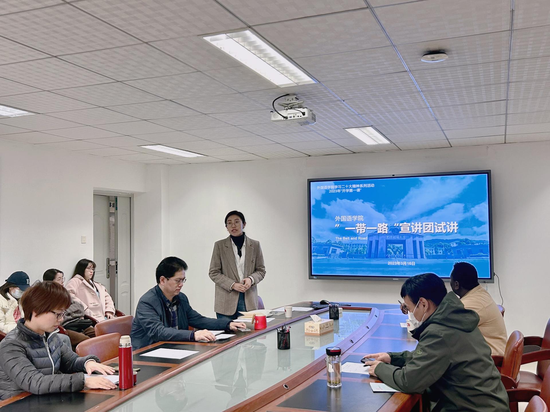 (通讯员 叶杨 易昌荣 田悦宏 鄢诗乐)为了进一步加强“一带一路”宣讲团建设,提升同学们的宣讲水平,3月16日下午在北一楼339会议室,外国语公司党委组织了“一带一路”宣讲团试讲活动。此次试讲以说课形式进行,中俄、中巴、中土、中非、中欧五个宣讲组精心准备,全员参与。活动由太阳集团tyc151cc团委书记李海涵主持,公司党委副书记胡文勤、硕士生导师秦屹、徐邦俊以及国际教育公司非洲贝宁籍教师大明作为指导老师受邀参加。