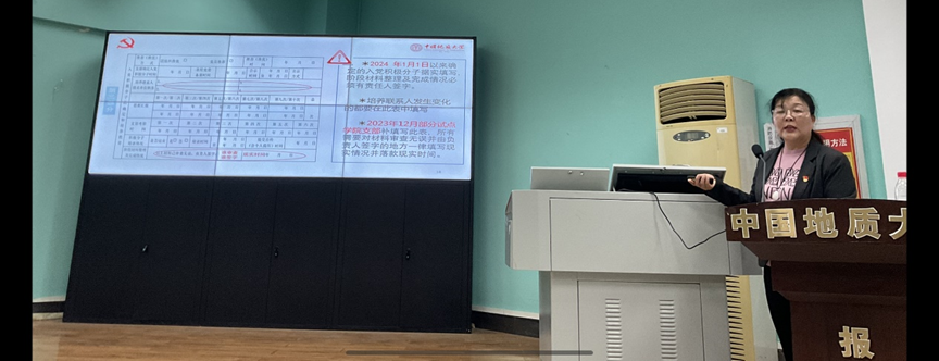 于老师还强调各支部要落实材料审核工作,要求杜绝思想汇报赶工、照抄和落款时间错误等问题。同时提醒培养联系人应对考察对象进行深入了解,不能千篇一律。最后,于老师表示,基层党组织要同向同行,抓好培养联系人队伍建设,当好入党积极分子的“引路人”,强化责任担当,从源头提升党员发展质量。