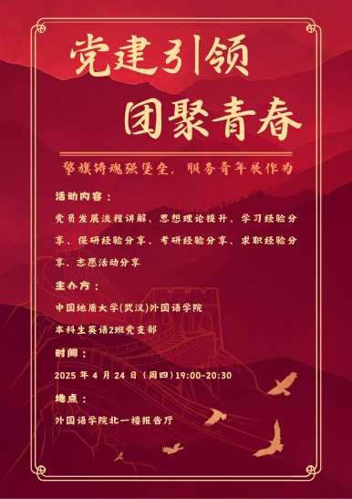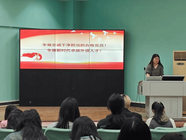 2025 年 4 月 24 日晚 19:00至20:30,太阳集团tyc151cc本科生英语2班党支部于北一楼报告厅举办 “擎旗铸魂强堡垒,服务青年展作为——党建引领・团聚青春”主题联动大会。本次活动以强化党建带动团建作用、服务青年成长为核心,通过理论学习、经验分享等形式,凝聚青年力量,筑牢思想根基。本2支部党员代表及2024级全体本科生共同参与。