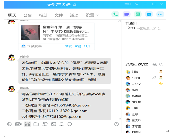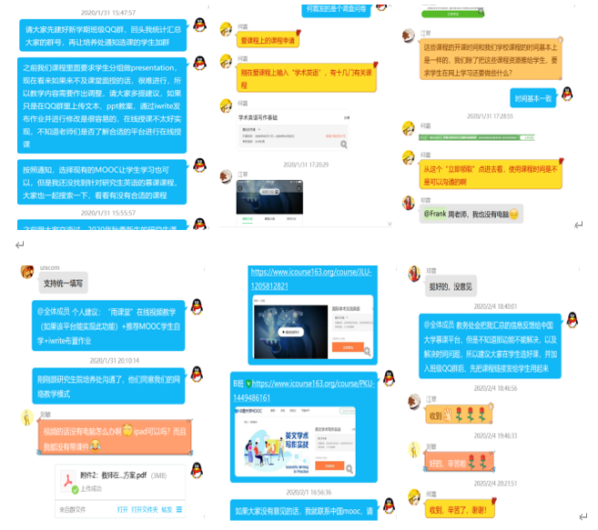 自1月30号开始,在校研究生院的具体要求和指导下,公司张基得书记、张峻峰经理高度重视,积极部署。承担公司研究生公共英语教学的老师们充分利用原定返校开学日期前的时间,在QQ群里开展头脑风暴,充分讨论如何因地制宜地开展学习、教学和研究工作,迅速制定研究生科技英语写作与交流“一课一策”教学工作组织方案。