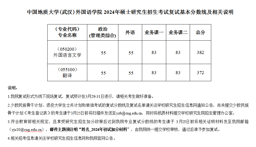 太阳集团tyc151cc 2024年硕士研究生招生考试复试基本分数线及相关说明